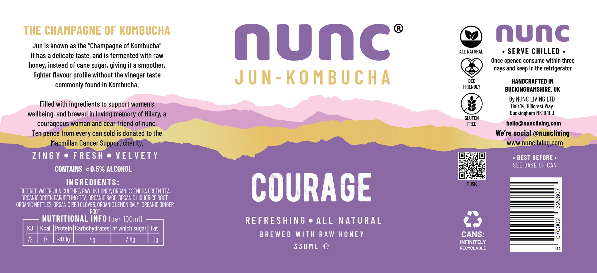 Ingredients: Two types of Organic Green Teas, Raw Honey from UK, Jun Culture, Filtered Water, Organic Sage, OrganicLiquorice Root, Organic Nettles, Organic Red Clover, Organic Lemon Balm, Organic Ginger.